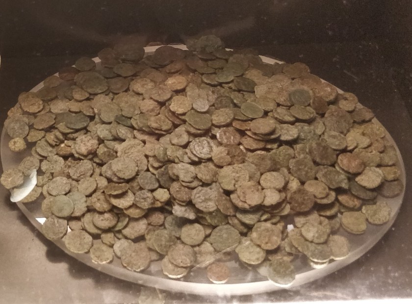 But whose money was it? The cache was found in the servants’ area of the house, so it seems likely that it belonged to a slave or a free employee. Perhaps he or she was eagle-eyed and picked up coins from the streets when sent on errands. Perhaps it was leftover pay, squirreled away over many years, every so often a nummus dropped in the jar as we might have a coin bank today. It could literally have been the life savings of a person, age unknown, but who hoped one day to provide a dowry for a daughter, buy a new outfit, have a day off, pay for medical care or even to escape the city at a time when soldiers filled the streets and people had spoken of decline and fall for decades. We will never know either the owner or the purpose, but the Servant’s Hoard gives us a glimpse into that aspect of Roman history so easily overlooked or forgotten – the lives of the poor.